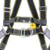 Alquiler de arnés de seguridad anticaídas Secur con anclaje en la espalda y en el pecho. Homologado EN361. Talla única con cintas regulables en los hombros y los muslos. Apto para usuarios de hasta 140kg con cintura de 85 a 120cm, muslos de 50 a 75cm y estatura de 1,64m a 1,80m. Cierre pectoral con anilla de anclaje esternal. A diferencia de los arneses que llevan 2 gazas textiles, esto evita posibles errores por parte del usuario. Adecuado para todo tipo de uso y se suele combinar con cabo disipador de doble gancho o enrollador retráctil. Pasa por una inspección certificada entre cada alquiler. También disponible a la venta.